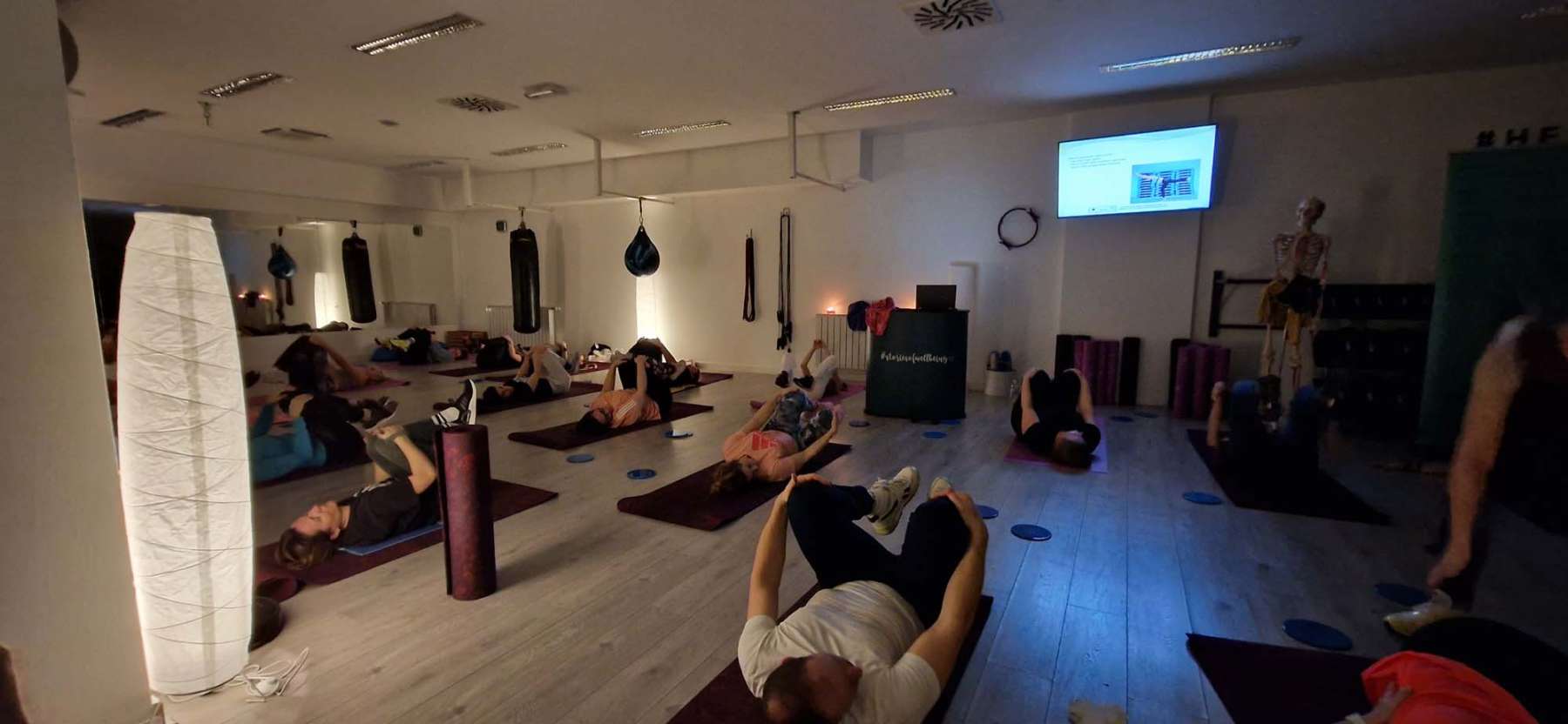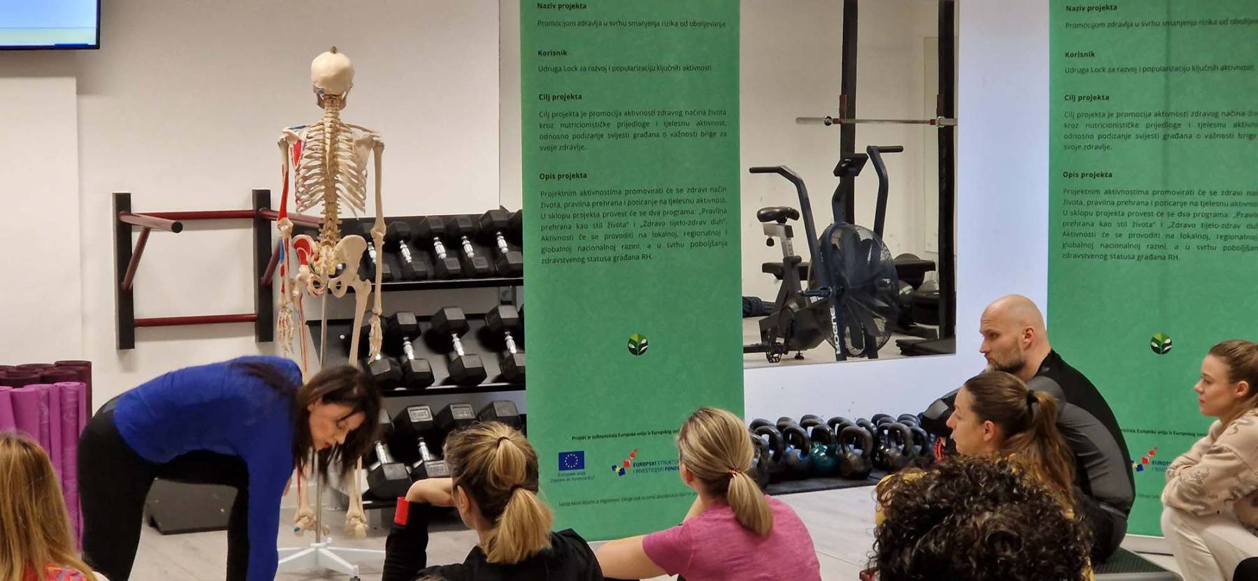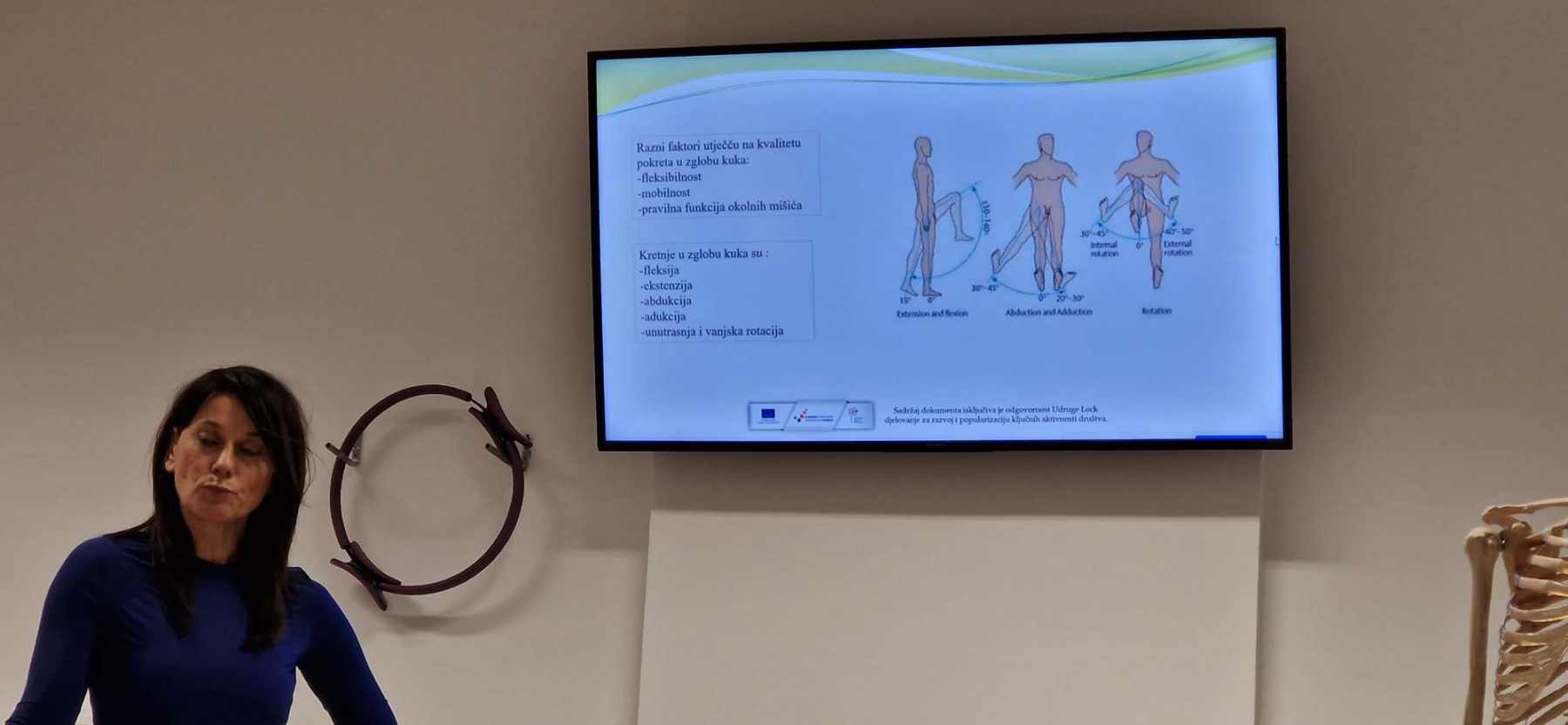 Prvu radionicu vodila je Ana Kutija na kojoj se govorilo o važnosti stabilnosti stopala i lopatica utječe na pravilno držanje tijela, te su uslijedile vježbe na donji dio vježbe. Naknadno je uslijedila pauza za ručak koju je osigurao Korisnik projekta Udruga Lock.