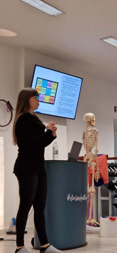 Drugi dio radionice održala je Marija Andrijašević o “dynamic & static stretching” i korektivne vježbe za kralježnicu i u upotrebu elastične trake.